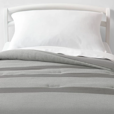 - Waffle-striped comforter adds function and sweet charm to your toddler’s bedroom decor